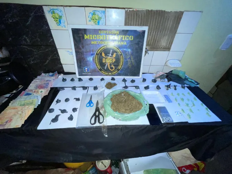 Además, se incautaron $ 93.160, una balanza, un celular, recortes de polietileno, tijeras y un revólver calibre 22 corto.