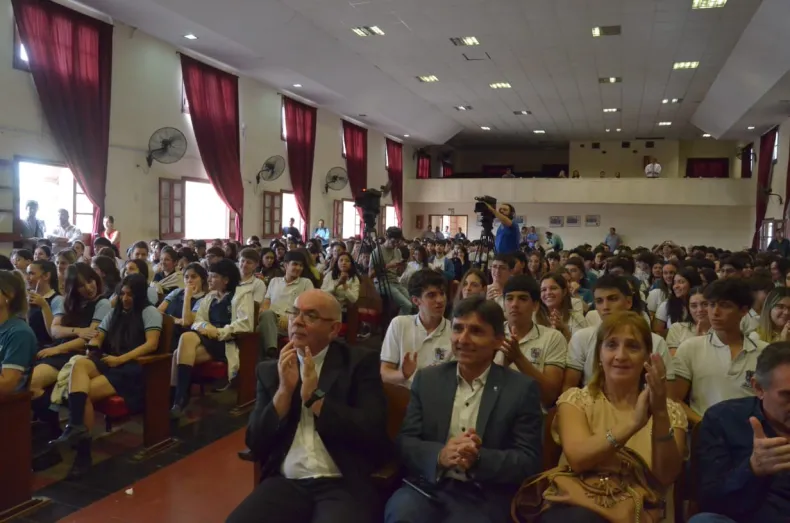 "Demostré que se pueden hacer grandes obras sin dinero del Estado con la participación y solidaridad de los ciudadanos", acentuó el candidato de La Libertad Avanza desde el Teatro del Colegio Don Bosco.