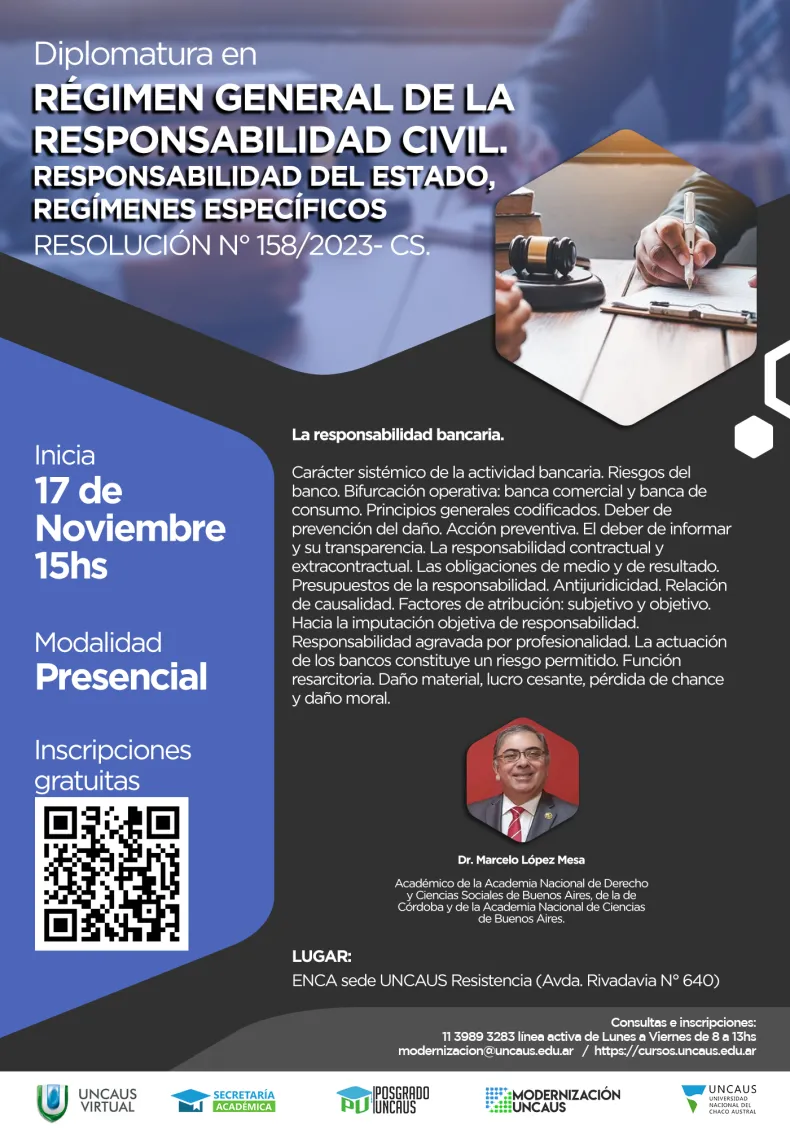 UNCAUS abrió inscripciones para una clase magistral abierta sobre la responsabilidad bancaria