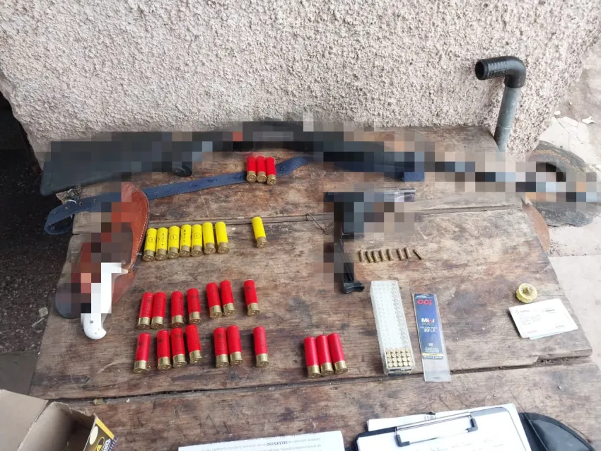En el sitio mencionado, efectivos de la Sección Rural de Sáenz Peña identificaron al morador de la vivienda, quien al momento de realizarse la diligencia portaba dos armas de fuego. Allí, se procedió al secuestro de un total de dos armas de fuego, una escopeta y una pistola, además de 53 cartuchos, 25 calibre 16 y 28 calibre 22.