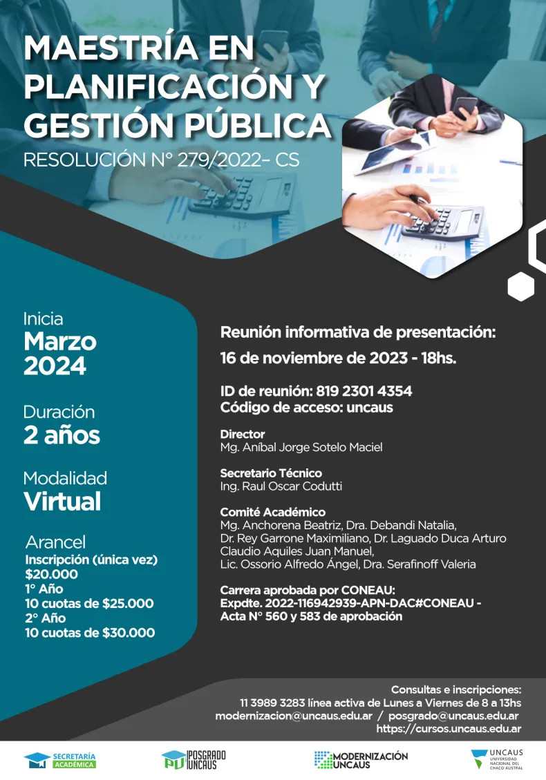 Maestría en Planificación y Gestión Pública de la UNCAUS: las clases comenzarán en marzo 2024