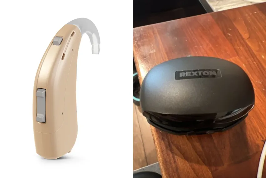 Los audífonos son de marca Rexton tipo BTE , en el momento que fueron extraviados se encontraban dentro de su carcasa, color negra, con forma ovalada y el logo de la marca escrito en letras mayúsculas.