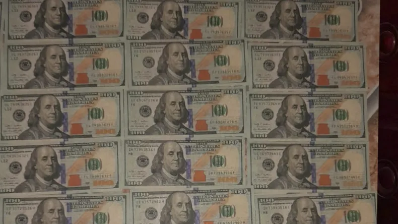 En el lugar se encontraron 44 billetes de 100 dólares ocultos en el compartimiento del motor detrás del filtro de aire de una camioneta Trafic blanca, todos aparentemente falsos.