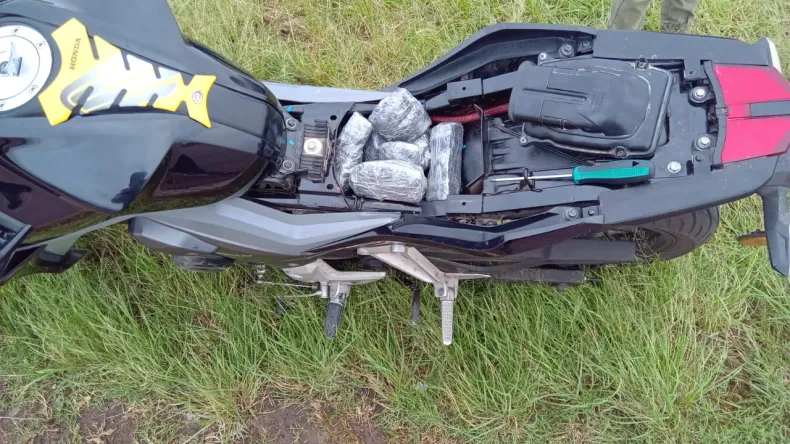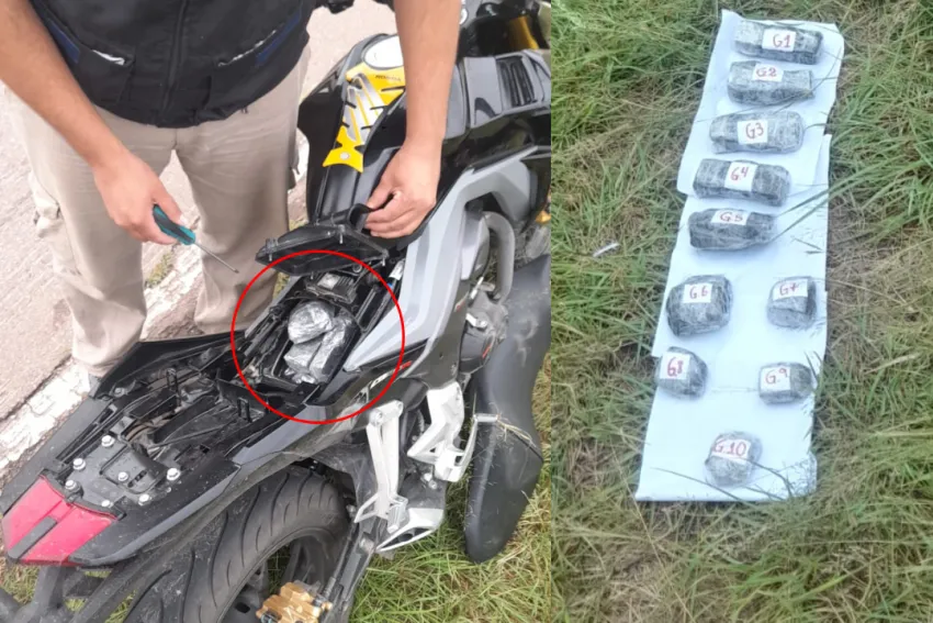 Sin embargo, cuando los agentes revisaron la moto, lograron detectar debajo del asiento, en el sector del filtro de aire, varios paquetes rectangulares envueltos en cinta. Se trataba de cocaína, arrojando el pesaje de 1 kilo 442 gramos.