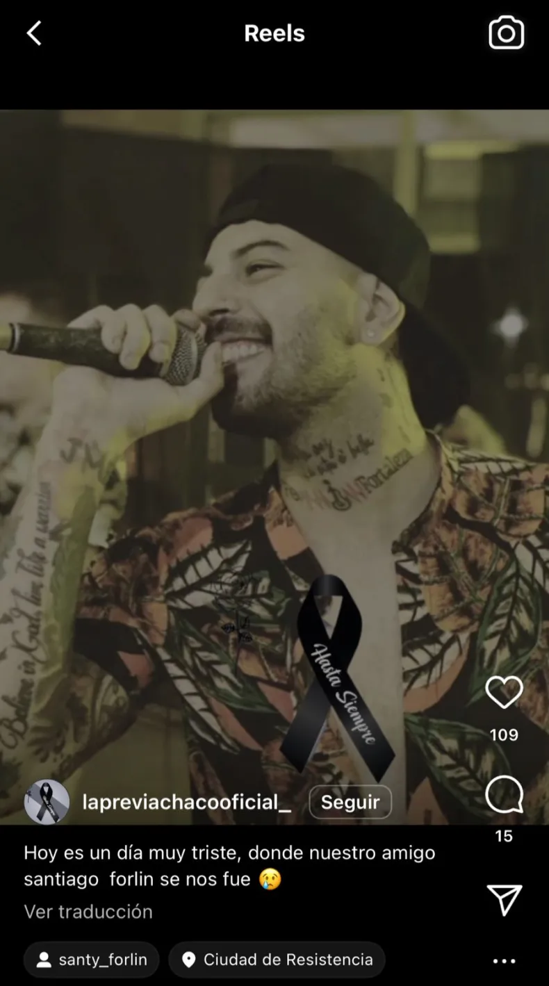 En sus historias publicaron además una foto del joven Santiago Forlin cantando y sonriente y escribieron: "Que en paz descanse mi amigo, compañero de mates, viajes, charlar y tus interminables preguntas. Manda mucha fuerza a tu familia".