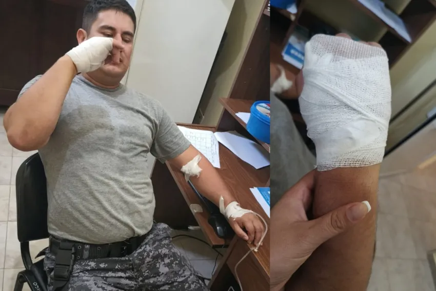 En tanto el suboficial herido, fue trasladado al hospital donde ingresó con el diagnóstico de "herida cortante en palma derecha de 5 cm. de longitud aproximadamente se realiza sutura, permanece en observación".