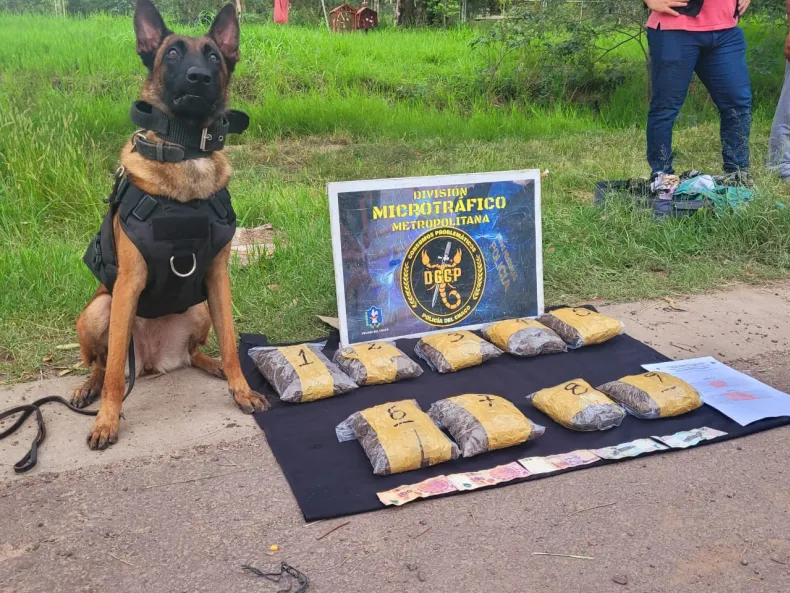 Fue en ese momento que Lulú alertó con ladridos y rasguños la presencia de una valija que estaba en poder de un hombre. Ante un testigo, los agentes abrieron el bolso y descubrieron 8 envoltorios con una sustancia vegetal, que arrojó resultado positivo a cannabis sativa con el peso de 6.140 gramos.