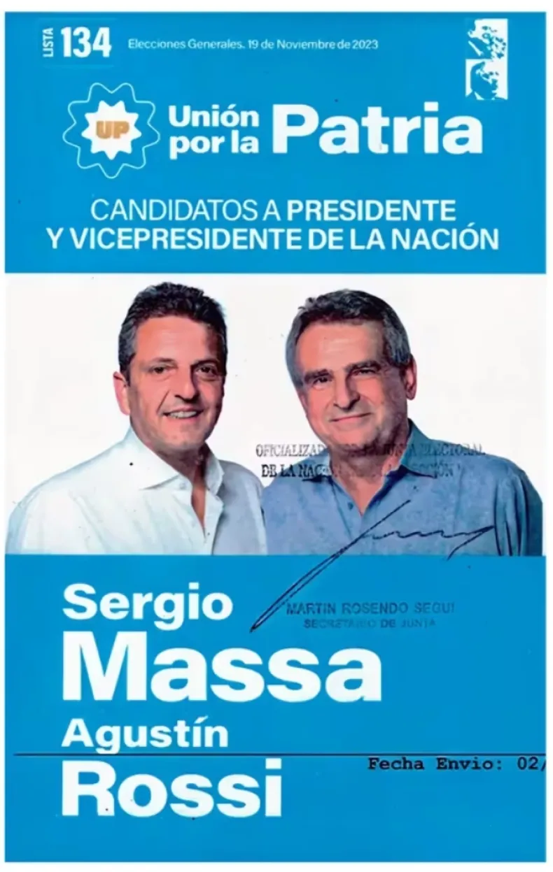 Massa se presenta con Agustín Rossi como compañero de fórmula, encabezando la lista 134 de Unión por la Patria.