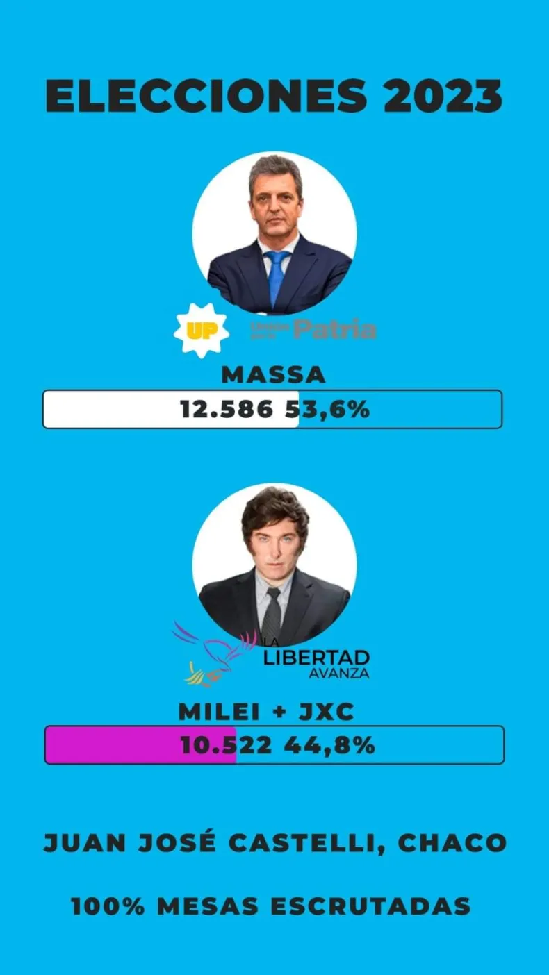 Tras la derrota electoral de Unión por la Patria a nivel nacional, el intendente de Castelli brindó un comunicado en donde expuso la "victoria" oficialista en la localidad del interior.