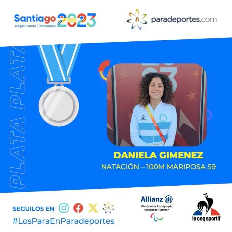 Además, ese mismo día, Giménez se quedó con la medalla de bronce en los 50m Libre S10, completando la competencia en 30s 73/100.