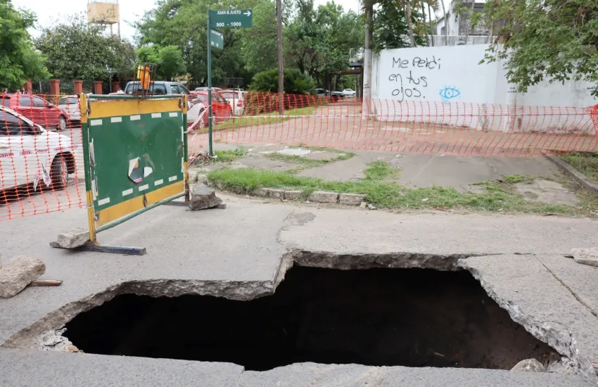 El secretario de Servicios Públicos, Claudio Westtein, explicó que "hubo un hundimiento del pavimento en el cruce de las calles Juan B. Justo y Juan de Dios Mena debido a una rotura de una cañería de cloaca, lo que provocó que se haya lavado el suelo, se consuma y que todo se vaya por la misma cañería", y agregó que "debido a esto la losa quedó desprotegida y el paso de vehículos de manera constante hizo que cediera".