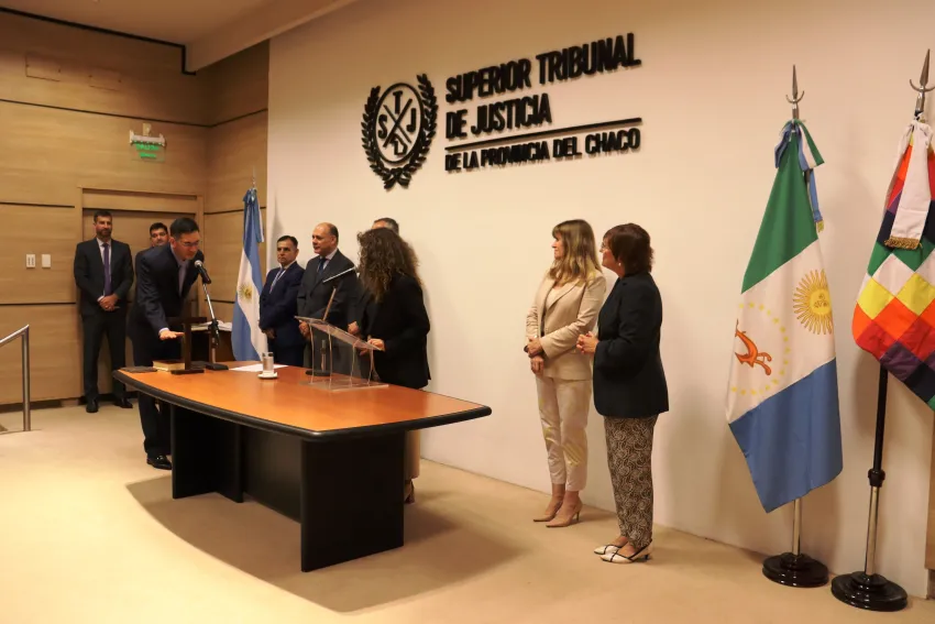 La presidente del Superior Tribunal de Justicia Iride Isabel María Grillo tomó juramento hoy a María Fernanda Abraham como Fiscal de Investigación para el Equipo Fiscal N°9 de Resistencia. A la vez también juró a Roby Alfio Vladimir Gómez como Juez para el Juzgado de Paz y Faltas de Tercera Categoría de la localidad de Laguna Limpia.