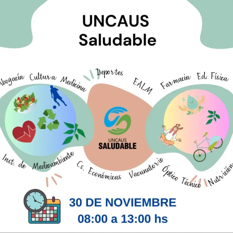 La Universidad Nacional del Chaco Austral invita a la comunidad, a celebrar el día jueves 30 de noviembre de 2023 de 8 horas a 13 horas, el Día de UNCAUS Saludable, para visibilizar el trabajo de las diversas áreas de la institución educativa, en la implementación de estrategias de entornos saludables.