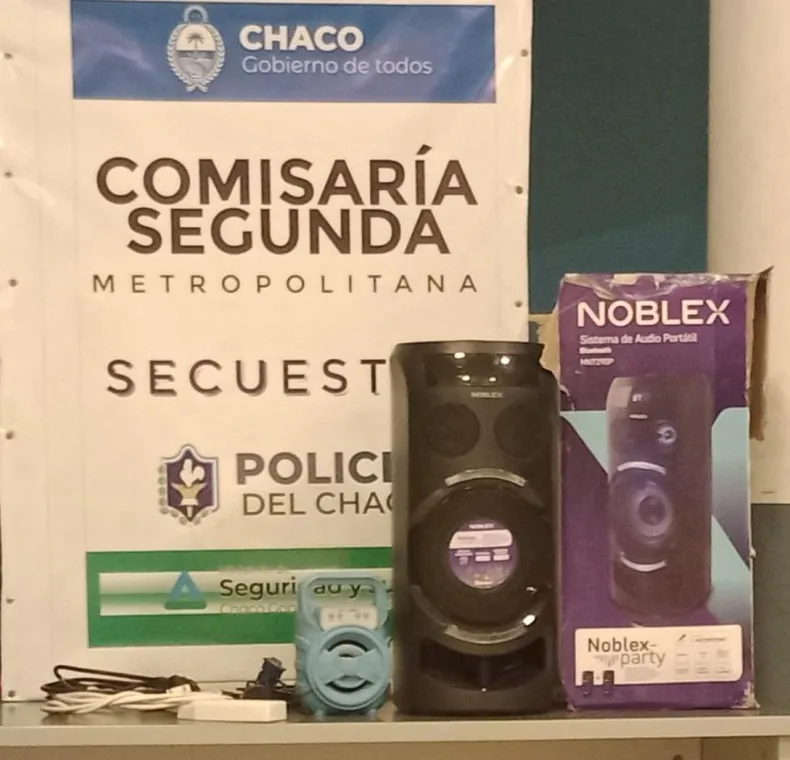 El mismo se trasladaba con una caja conteniendo en su interior: un parlante inalámbrico, un micrófono, cables de alimentación para computadora, una pava eléctrica y un prolongador de 6 metros. Todos estos elementos fueron secuestrados y trasladados hacia la guardia de la unidad interviniente.