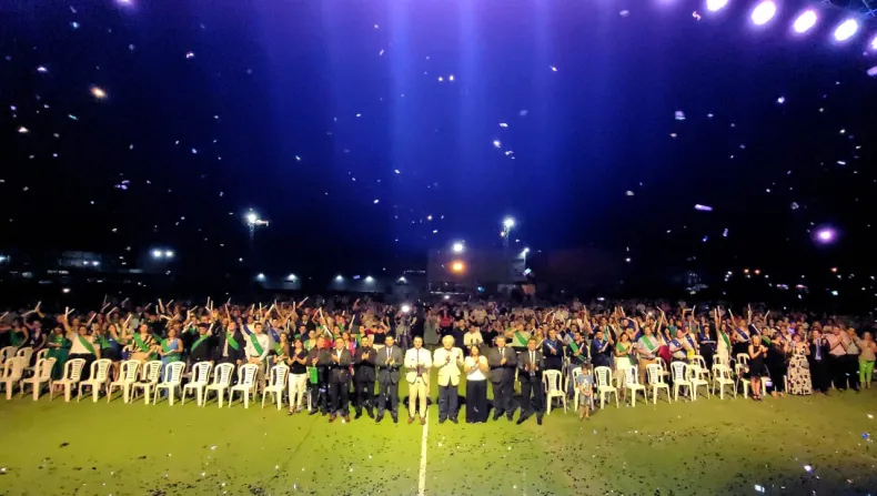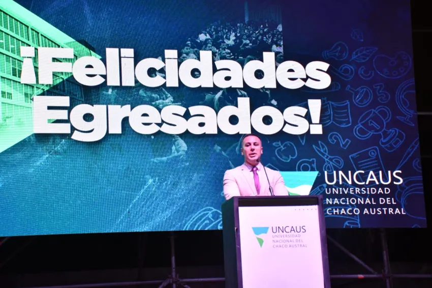 El acontecimiento de la Universidad Nacional del Chaco Austral tuvo un importante marco de público para celebrar la finalización de estudios, en el corriente año, de 151 personas. Este evento se realizó en la cancha de hockey del establecimiento, como parte de los festejos del 16° aniversario de la institución educativa.