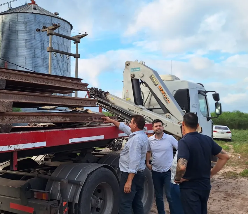 El intendente Bruno Cipolini, junto al secretario de Desarrollo Local Oscar Dudik, supervisó el arribo de los 7.100 metros de rieles que fueron trasladados desde Salta hasta el Parque Industrial de Sáenz Peña para la ejecución del ramal ferroviario multicargas compuesto de 3.500 metros de vías en 3 tramos.