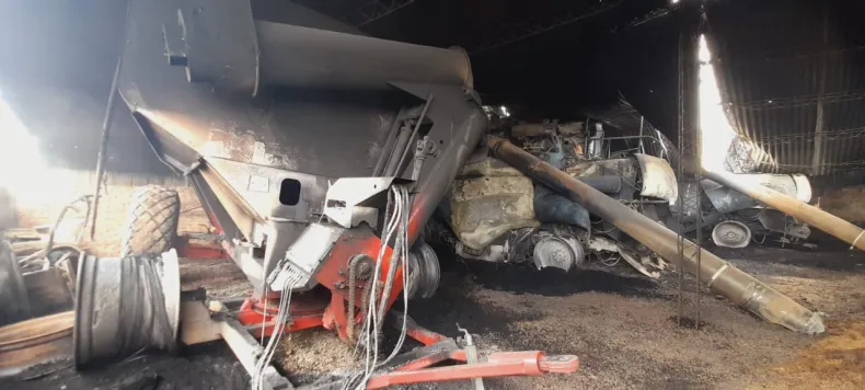 El gran incendio se produjo ayer en Lote 48 La Montenegrina "Estancia Don Florencio" propiedad Diego Mazarevich. El fuego se inició en un galpón tipo tinglado y afectó varias maquinarias agrícolas, entre ellas una cosechadora, un tractor, una sembradora, dos monotolva, dos plataformas, dos motocicletas y otros elementos a determinar.
