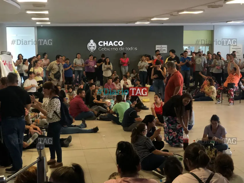 Empleados del Ministerio de Trabajo realizaron una manifestación dentro de la Casa de Gobierno