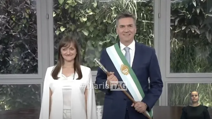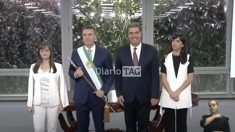 Tras haber jurado en la Cámara de Diputados junto a la vicegobernadora Silvana Schneider, el gobernador recibió el traspaso de mando.