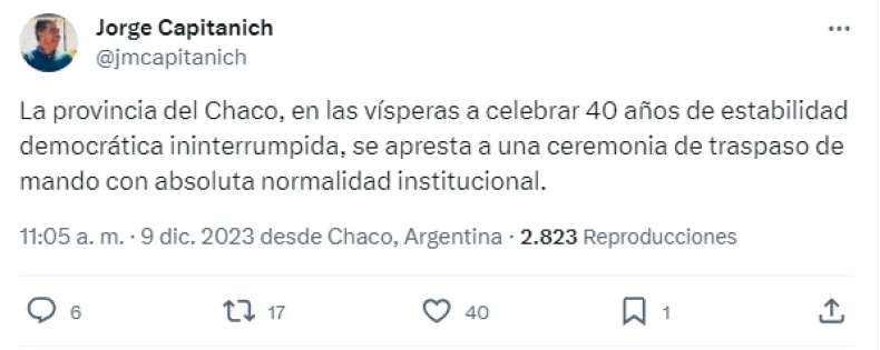 Capitanich en X: "Pueden estar seguros que vamos a pagar el medio aguinaldo y los haberes jubilatorios"