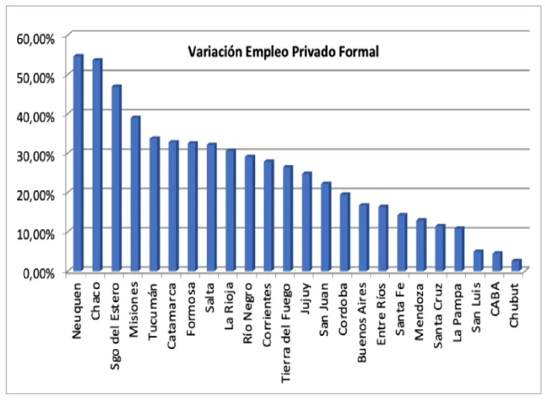 Según el Centro de Estudios para la Producción, Chaco y Neuquén fueron las provincias que más crecieron en empleo formal privado en el período 2007-2023, con un 53,6% y un 54,6% respectivamente. A diferencia de Neuquén, nuestra provincia no tiene Vaca Muerta.