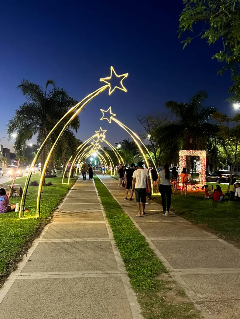 Los sáenzpeñenses pudieron apreciar el túnel formado por estrellas fugaces que recorre la avenida 33 desde la calle 10 hasta la 14. Además, en distintos tramos hay diferentes decorativos con luces navideñas que embellecen la ciudad.