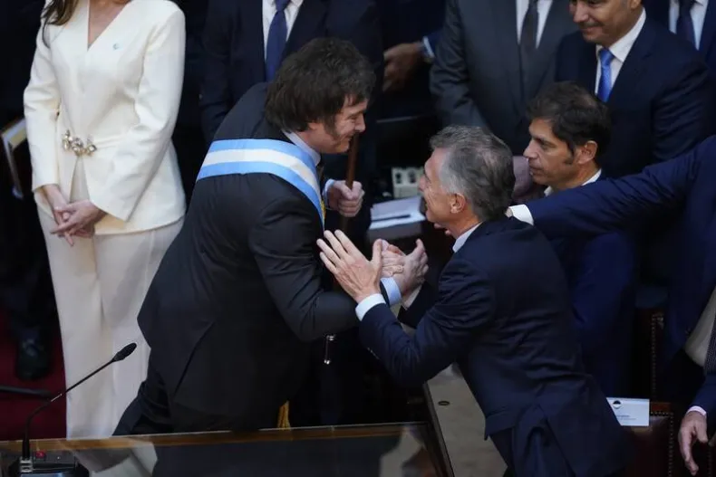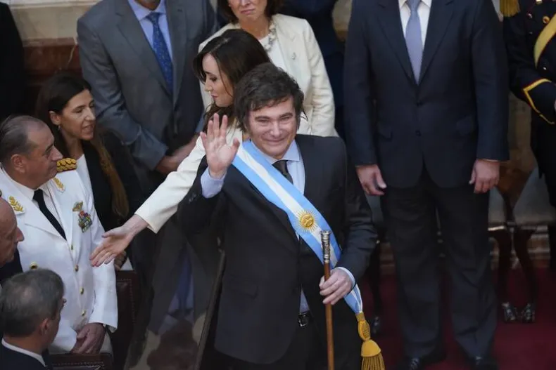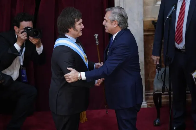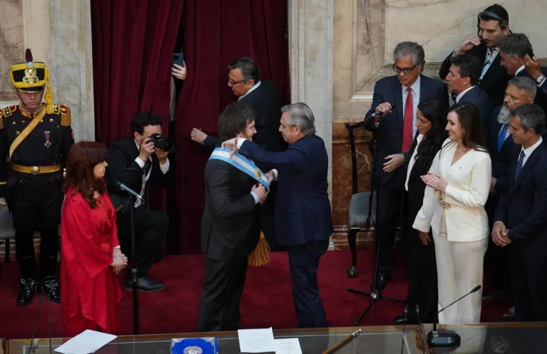 Cercanas las 12:00 de este mediodía, Javier Milei juró ante la Asamblea Legislativa y Alberto Fernández hizo entrega del bastón y la banda presidencial, iniciando así el primer gobierno libertario de la historia argentina. También juró la vicepresidente, Victoria Villarruel.