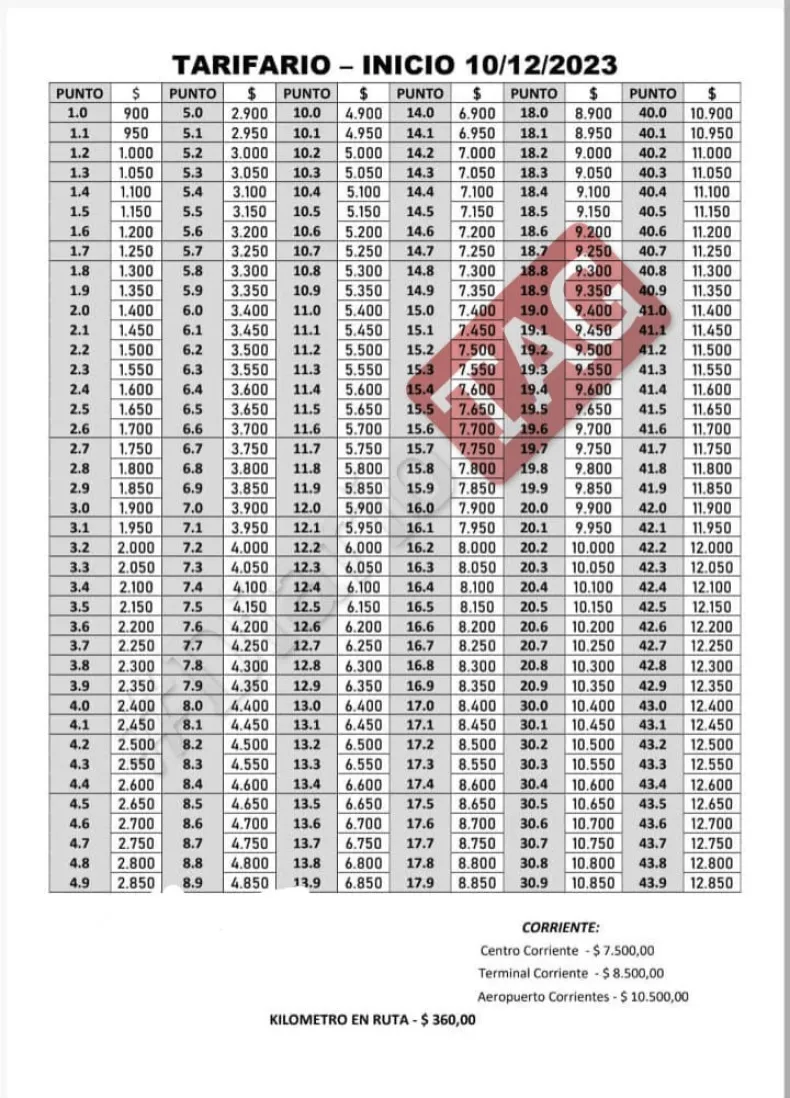 Es así, que, el tarifario detallado que llegó a Diario TAG ilustra cómo varía el monto en función de la cantidad de fichas asociadas a un viaje, donde cada ficha generalmente representa 100 metros.