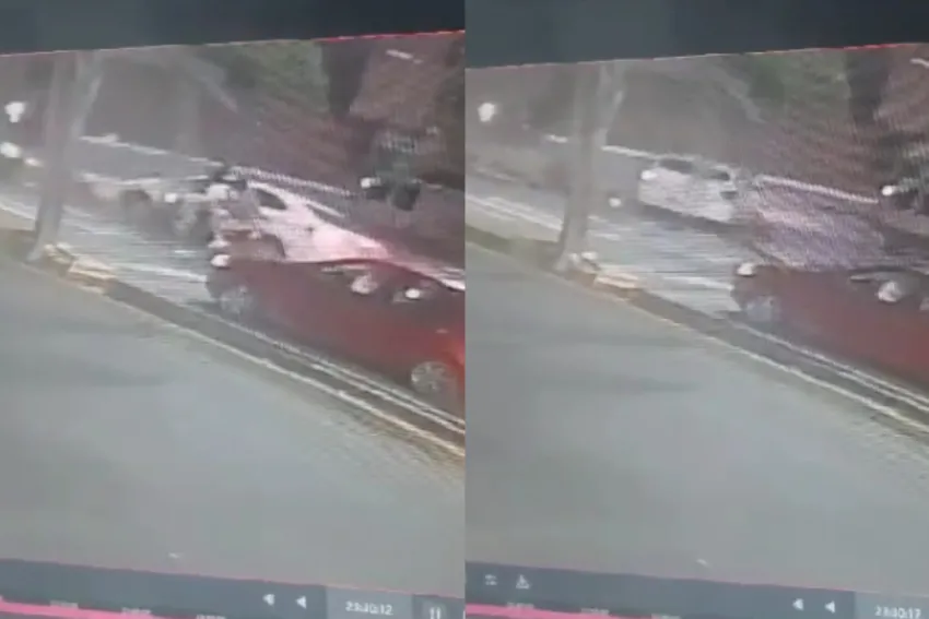 En el video difundido se logra ver un automóvil blanco impactando desde atrás a una moto que se encontraba esperando el semáforo sobre la avenida Chaco. A bordo de la misma circulaba un hombre de 35 años con sus hijas de 12 y 4. Los tres cayeron de la moto por el impacto.
