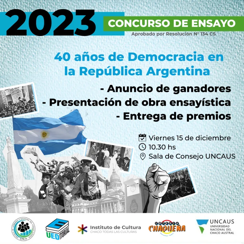 "Todo aniversario es una buena excusa para la realización de balances y reflexiones retrospectivos. En 2023 cumplimos 40 años de la recuperación de nuestra democracia. El acontecimiento nos encuentra perplejos. Podemos celebrar la vigencia ininterrumpida del Estado de Derecho, la continuidad institucional y el respeto irrestricto de la voluntad popular, que durante estas cuatro décadas se han mantenido incólumes", sostiene el doctor en Ciencias Sociales y Magister en Ciencias Políticas Sebastián Jiménez al presentar la Obra "40 Años de Democracia en la República Argentina. Demos vs. Kratos" en la que se publican los 2 ensayos ganadores del Concurso Nacional que organizó UNCAUS a través de su Editorial Universitaria".