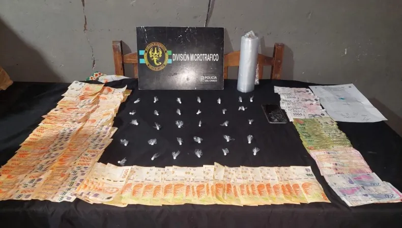 La tarea de los agentes arrojó como resultado el hallazgo de 31 bochitas de cocaína con un peso total de 8 gramos, un rollo grande de polietileno transparente, un celular y $254.550 pesos en efectivo.