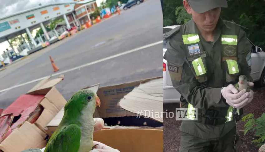 Rescataron a cotorras que eran trasladadas en un colectivo sobre el peaje del puente Chaco-Corrientes