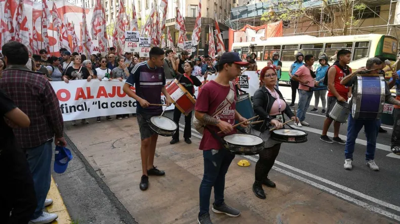 Finalmente, tras la lectura de un documento titulado como "Abajo el plan motosierra de ajuste de Milei y el FMI", Los manifestantes iniciaron la desconcentración por las calles que permanecieron totalmente cortadas.