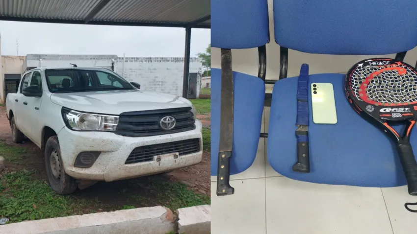 Tras la apertura del rodado, la Policía procedió al secuestro de un machete; un cuchillo de fabricación casera; un teléfono celular, pantalla táctil; una gomera y una paleta de pádel, como así también se halló ambas chapas patentes.
