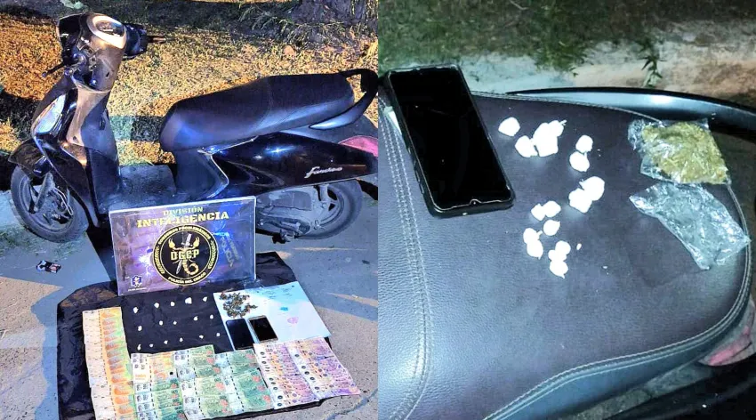 Luego de la comunicación telefónica con Fiscal Antidrogas N°2, se procedió al secuestro formal de la sustancia, el dinero y la motocicleta Yamaha Fascino, notificando aprehensión a esta persona por infracción a la Ley 23737 de Estupefacientes en función de Ley Provincial 2304-N de Narcomenudeo.