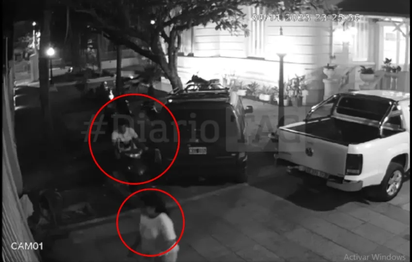 En las imágenes, se los ve ingresar al predio del Chalet Rapaccioli, alrededor de las 22 horas, y merodear entre los vehículos estacionados. Finalmente, eligen la moto de la denunciante, que se encontraba sin medidas de seguridad puestas, y se la llevan.