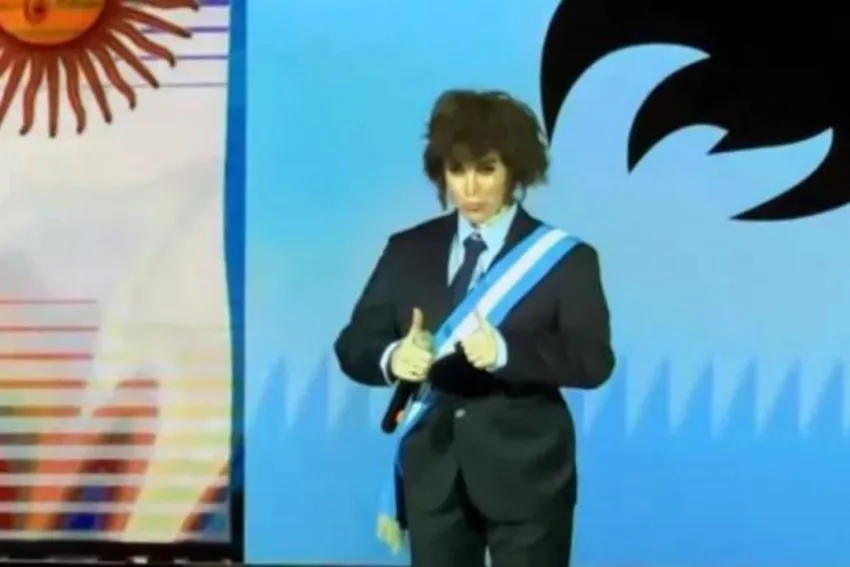 Durante ese pasaje del espectáculo titulado Fátima 100%, la puesta en escena hizo referencia al líder de La Libertad Avanza. La bandera argentina empezó a flamear en las pantallas gigantes, mientras sonaba la canción de La Renga que acompañó al mandatario durante su campaña y se convirtió en su insignia.