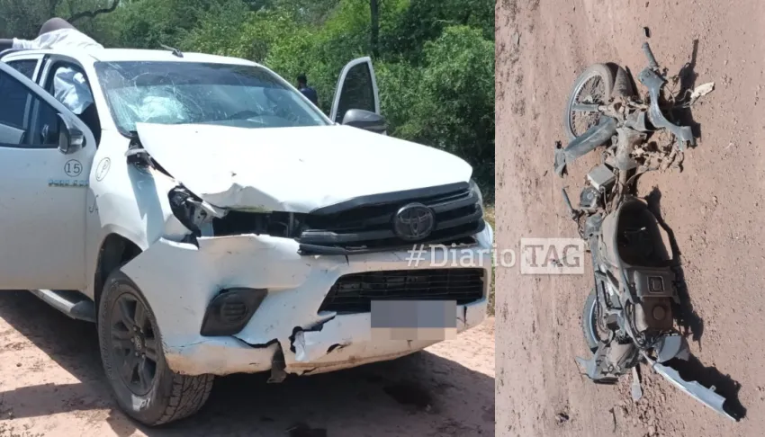 El choque se produjo entre una camioneta Toyota Hilux y una motocicleta de 110 cilindradas que era conducida por un hombre de 60 años que fue quien según fuentes policiales "perdió la vida al instante".