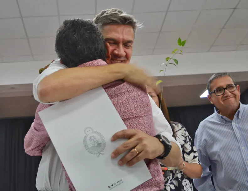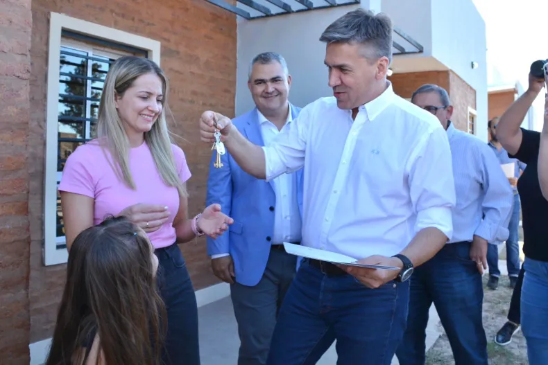 Leandro Zdero acompañado por la intendente de Santa Sylvina, Susana Maggio, entregó 16 viviendas y ocho títulos de propiedad en la localidad. Tras las entregas, el gobernador anunció próximas obras de ripiado también allí. "Estoy feliz de poder concretar uno de los sueños que tienen muchísimos chaqueños que es el techo propio, el techo digno", expresó recordando que las viviendas se iniciaron en la gestión anterior, pero no estaban terminadas. Y agregó: "A partir de ahora las viviendas que se hagan la vamos a entregar cuando estén terminadas".