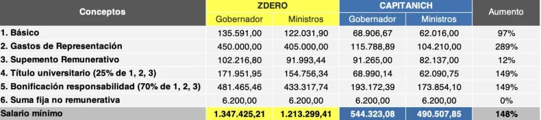 Siguiendo esta línea, escribió que "Zdero y sus funcionarios casi que se triplicaron su salario hoy. Dejo gráfico para que puedan verlo".