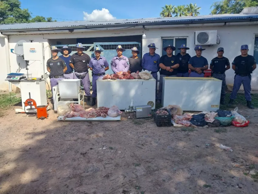 El segundo procedimiento se llevó a cabo en la calle 46 entre 21 y 23 del Barrio Ramseyer de Sáenz Peña, donde se secuestraron dos freezers, una sierra tipo carnicera, una embutidora, una mezcladora, una moledora de carne, seis armas blancas, una chaira, dos bandejas blancas, 40 kilos de carne vacuna, 50 kilos de carne de porcino y 20 kilos de carne de ganado menor.