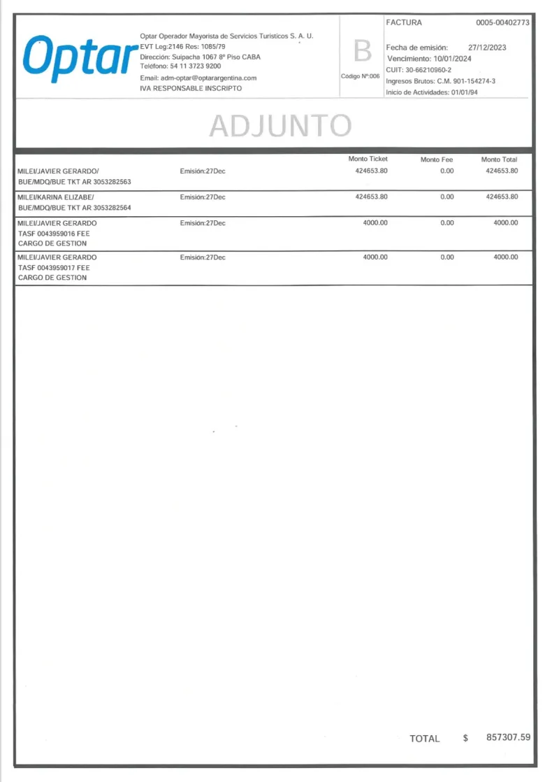 En el marco de las criticas que recibió el presidente, Javier Milei, por su viaje a Mar del Plata para asistir a una obra teatral protagonizad por su pareja, Fátima Florez, el vocero presidencial dio a conocer los comprobantes de los vuelos y el hotel donde se alojaron. Cabe recordar que junto a él fue su hermana, la secretaria general de la presidencia Karina Milei.