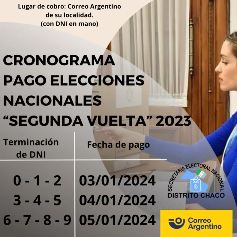 Para todas aquellas personas que participaron de las últimas elecciones nacionales donde se eligió al nuevo presidente de la Argentina, informaron el cronograma de pago desde la Secretaría Electoral Nacional, distrito Chaco.