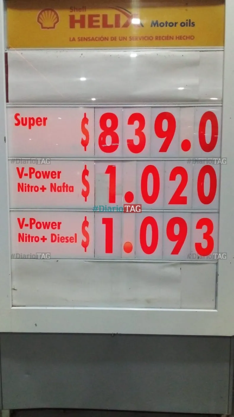 En algunas estaciones se puede ver reflejado los precios de la siguiente manera, en donde los valores de V-Power Nitro + Nafta y Diesel se ven $ 999. Ante la consulta de Diario TAG a referentes del sector, explicaron que "seguro tiene el problema que debe cambiar el sistema para poder pasar los $ 1000".
