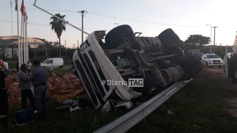 Un camión de frutas volcó en el acceso a Sáenz Peña y los vecinos se llevaron la mercadería