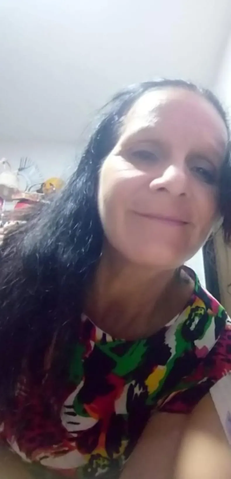 La mujer tiene 51 años, mide 1,60 metros de altura, es de contextura física delgada, tez trigueña, cabello lacio negro, ojos color marrones, usando la siguiente vestimenta y/o efectos personales: jeans y una camisa color celeste.