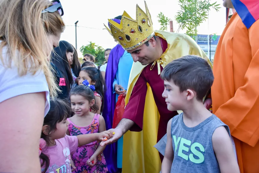 En vísperas de su festividad los Reyes Magos sorprendieron a los niños que, junto a sus familias, paseaban por la avenida 33 en la ciudad termal, con su sola presencia los Reyes dibujaron una enorme sonrisa en los rostros de los pequeños.