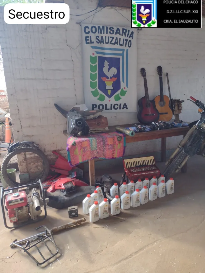 Por otro lado, en tanto en carácter de secuestro impostergable, decomisaron partes de otra moto de grandes cilindradas, dos motos de 110 cc., celulares, dinero en efectivo, 14 armas blancas y otros elementos de los que se investiga la procedencia.