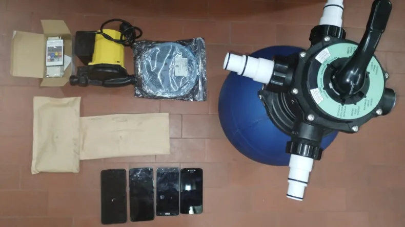 La Policía del Chaco, tras identificar a los supuestos estafadores E.R y C. R, lograron encontrar el domicilio de los mismos. Es por ello, que, este lunes conforme decretos Fundados del Juzgado de Garantías N° 01, se realizó allanamientos en los domicilios de C.R (padre) y E.R (hijo), logrando el secuestro de una bomba elevadora de presión, marca Plumita, color amarillo, 5 rollo de luces, para piscina, un controlador con placa y control, 6 teléfono celulares y un filtro de piscina.