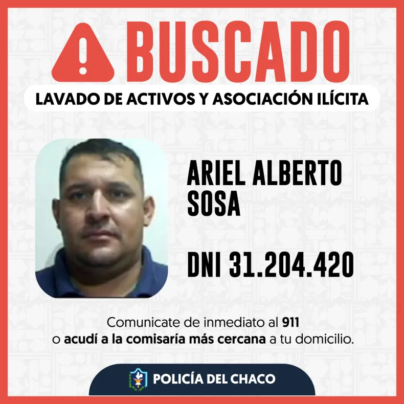 Es importante recordar que Ariel Alberto Sosa, Hernán Eduardo Acosta, Sergio Omar Fernández, Mauro Hernán Pacheco y Hugo Sebastián Sosa tienen órdenes de captura nacionales e internacionales, todos acusados de lavado de activos y asociación ilícita. Las fotografías de los fugitivos ya están siendo difundidas en redes sociales y en toda la unidad policial.